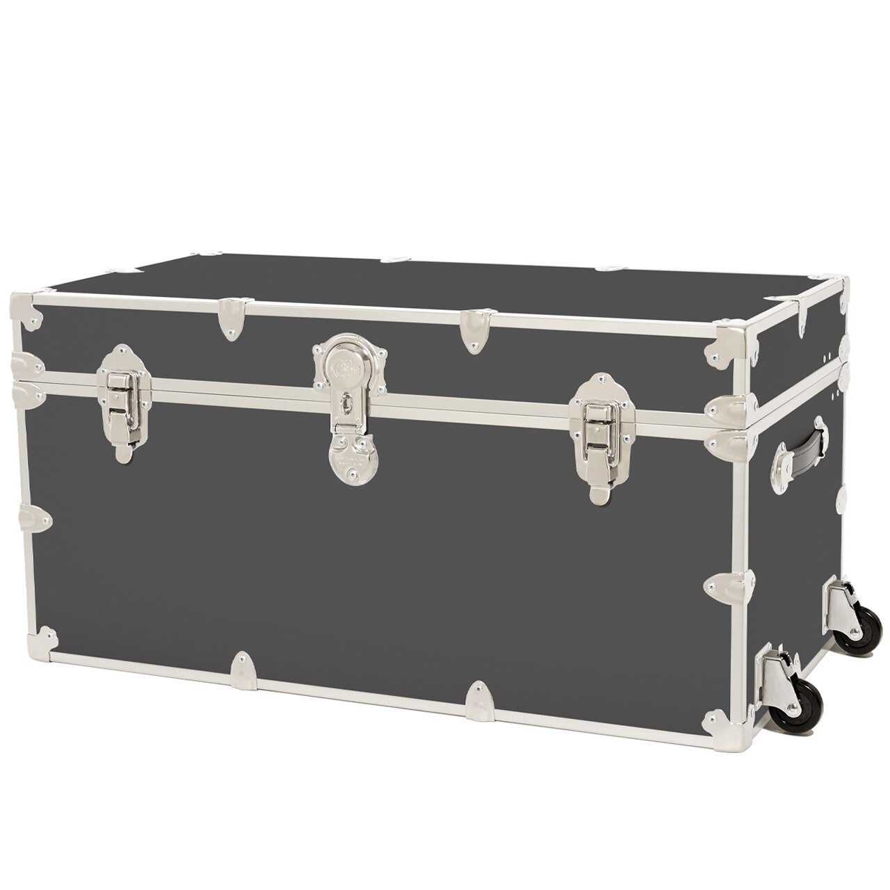 Lockable, strong, secure dorm trunk, table, bench all in one. Sitting weight 1000+ lbs. Features "no slam" lid, steel hardware, water/scratch resistant. Birch interior. Will last well beyond college. Comes with removable wheels. 36x18x18H 37 lbs.